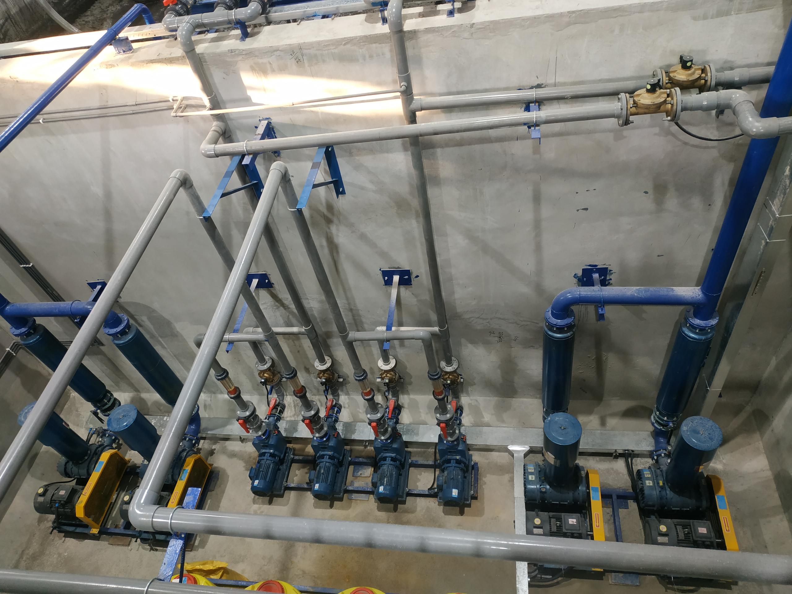 設計工藝:煤礦廢水進水+格柵池+調節池+MBR生化池+清水池及微生物投藥池+酸洗堿洗污泥池+PAM一體化制備裝置+生物加藥設備+疊螺式壓濾機+達標排放